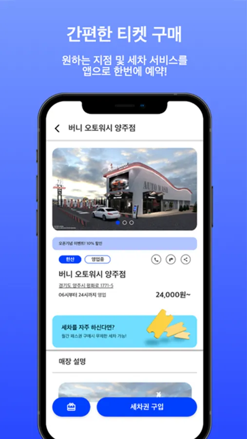 버니오토워시 세차장은 어플을 통하여 1회권을 구매할 수 있어요.