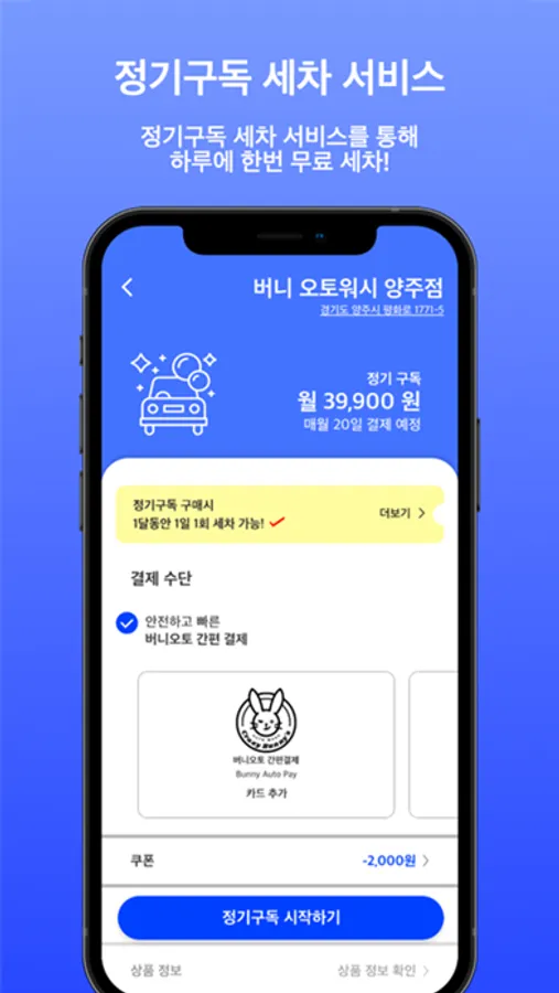 정기구독을 통해 1일 1회 기간 내 무제한 세차를 받아보세요!