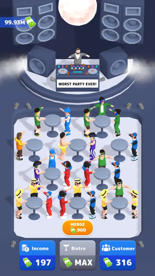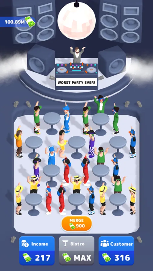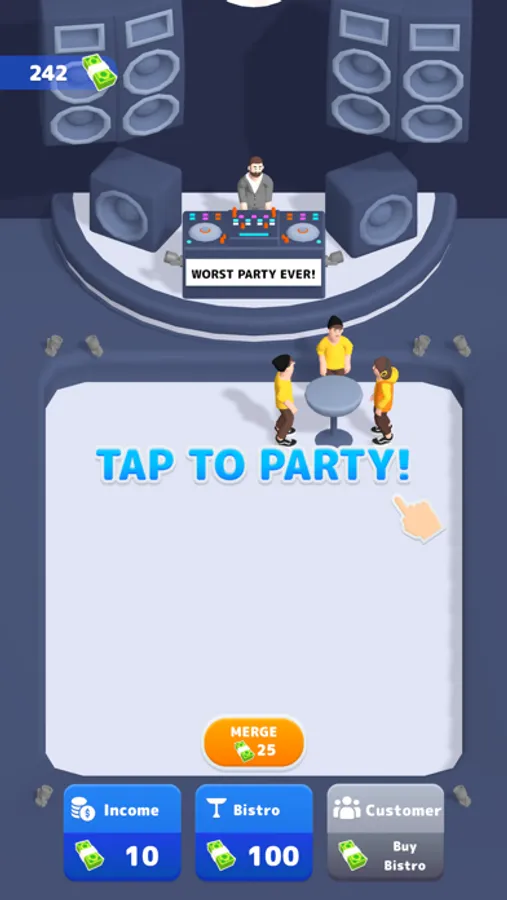 Did you bored by bad parties. Tap tap and start the best party in the universe. Merge your customers and be the best club ever.