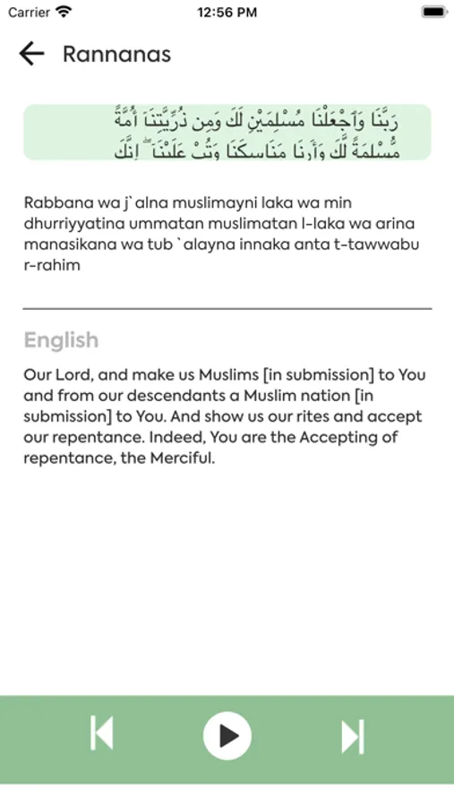 # Each Rabbana (invocation) is available in Arabic with its translation in English and the transcription in phonetics for Muslims who don’t read Arabic