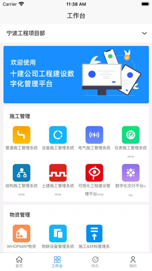 施工过程管理平台采用SAAS部署方式每个项目独立运作。集成了物资、管道、设备、仪表电气、质量等等施工专业