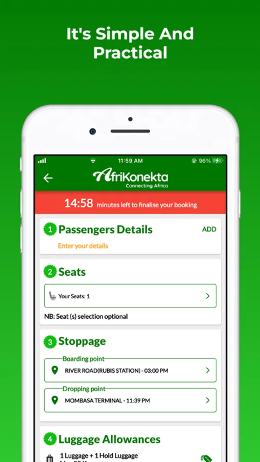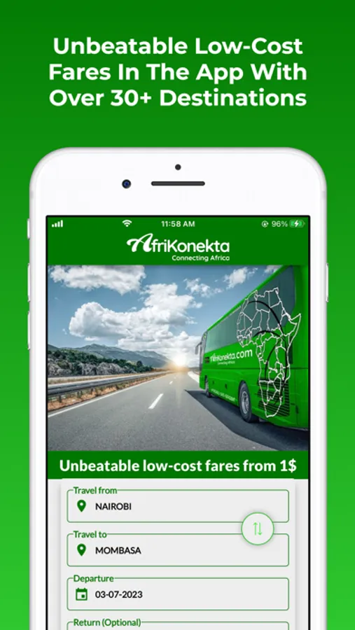 The AfriKonekta app allows you to easily and efficiently book your long-distance bus tickets across multiple countries in Africa starting from 1$. We offer tech enabled bus travel experience continuously expanding our connections and destinations as we build a more Connected Africa. Our commitment is to digitalise and make bus transportation more sustainable, connected, safe, convenient, user-friendly and low-cost in developing countries starting with Africa.