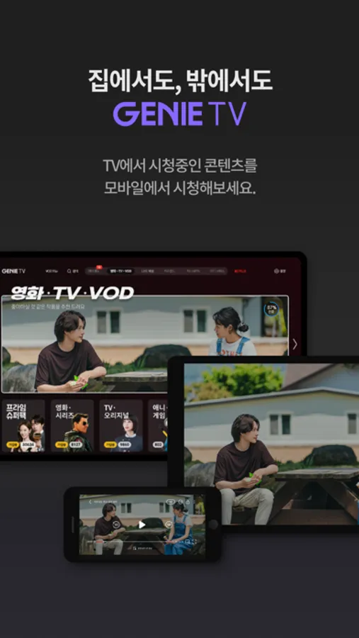 * 지니 TV 모바일에서 VOD를 시청하시려면, 지니 TV 셋톱박스와 연결(페어링)이 필요합니다.