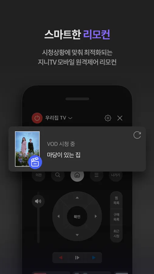 - 지니 TV에서 본 영상을 이동하면서도 연속적으로 볼 수 있습니다. 재미있는 부분을 멈추지 않고 약소 장소로 이동하면서 모바일 이어보기로 편안하게 감상하세요!