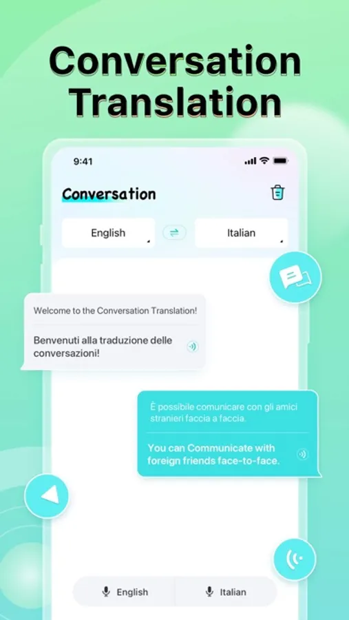 Voice translator supports all languages to English voice translation, and help you talk freely with foreign speakers and break down language barriers.