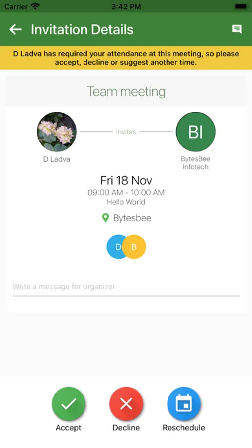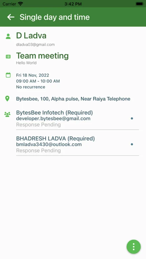 Let DynaMeet manage your meetings for you. Simply enter what, when, where, and who, and DynaMeet does the rest. Reduce the tedious back and forth with invitees. Handles single days and times, multiple days at the same time, or multiple days at different times.
