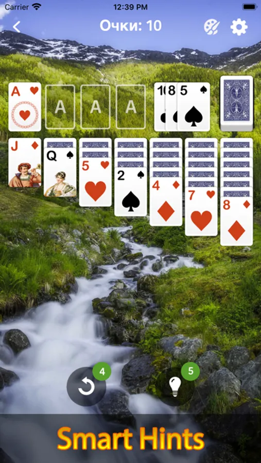 You will have to put the cards of four suits in different columns in ascending order and value. This uncomplicated game will help you relieve stress from the endless flow of information and focus. Spend your time immersed in the carefree card world with our “Klondike” Solitaire mobile app.