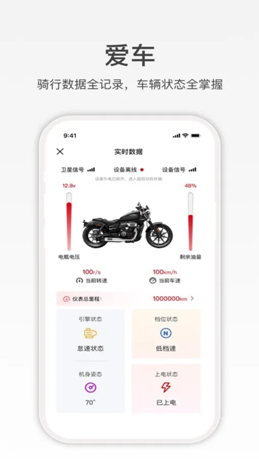 赛科龙APP是由宗申摩托为全国摩友打造的一款智能化车联网APP。您可以通过车辆状态查看、骑行数据监控、车辆远程操控、定位寻车及防盗等功能,让您时刻了解车辆情况,享受更多车主服务!