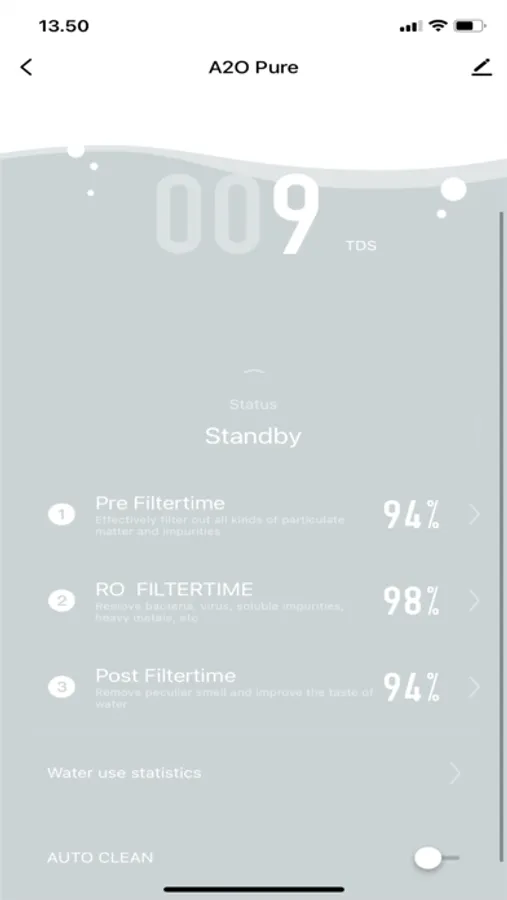Create transparency between you and your Aquaporin water purifier by tracking your water usage. Monitor your filter lifetime, next maintenance, and the effectiveness of the purification of the purifier.