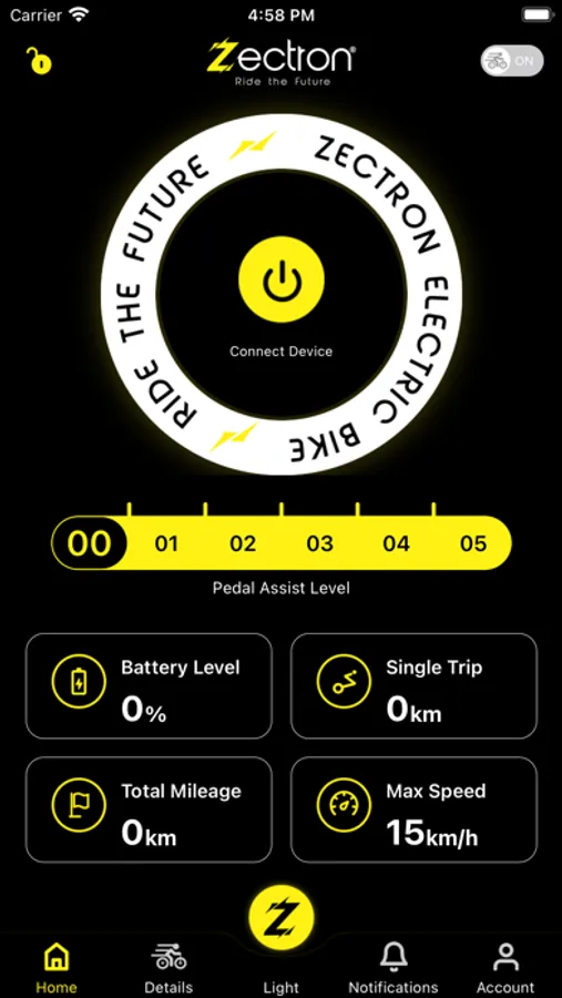 1. You can control your ebike’s speed, switch light and lock and unlock operation through Bluetooth. During the period, you can also check the driving speed, mileage and electricity of ebike in real time on the Home interface of the APP.