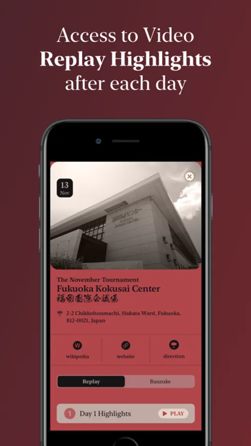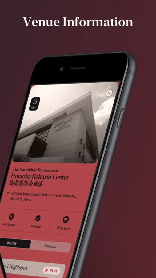 This app allows you to stay up-to-date with Sumo Tournaments Schedule and the venues.