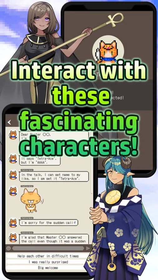 You can summon unique characters into the world in the application and enjoy communication with them through chatting, etc.