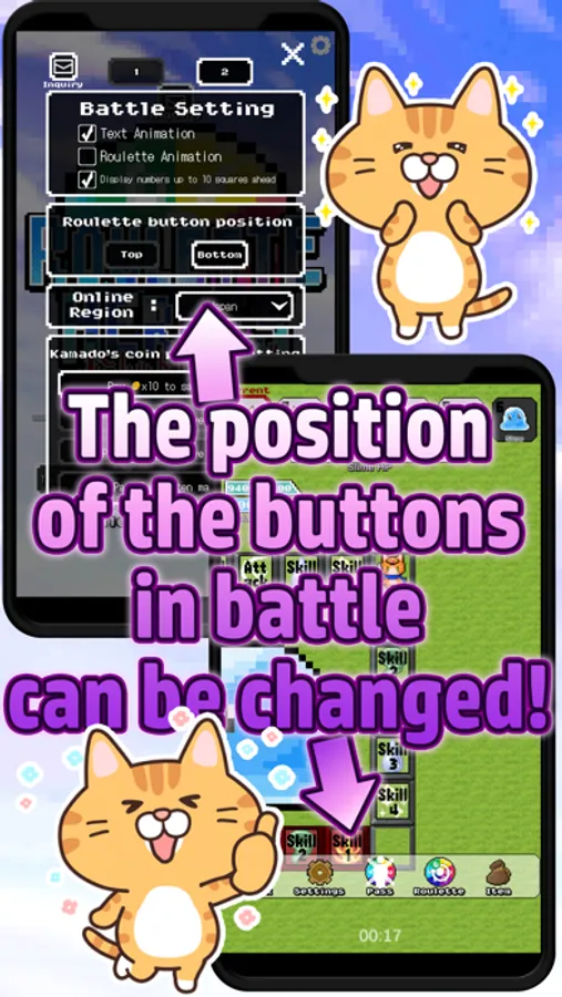 You can win the battle faster if you stop the roulette aiming at the square that executes the skill of the monster's weak point!