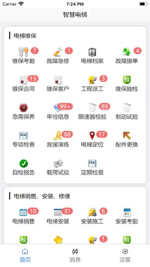 电梯档案:在手机中也能翻阅电梯信息,包含基本资料、规格参数、载荷试验、维保记录、故障记录、重大维修、自检报告、年检记录、抽检记录等信息。