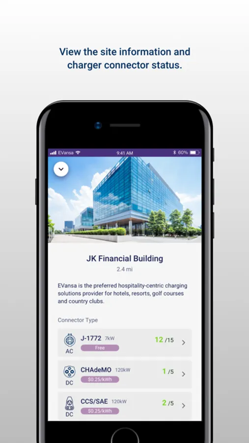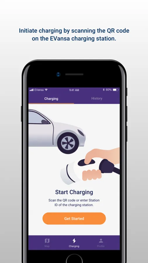 Evansa app lets you easily initiate charging at Evansa EV charging stations by scanning the QR code shown on the station. The app will display clear instructions so you can start charging. When charging is completed, you will receive a notification on your phone.