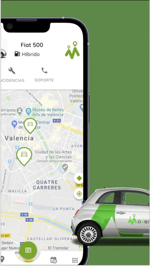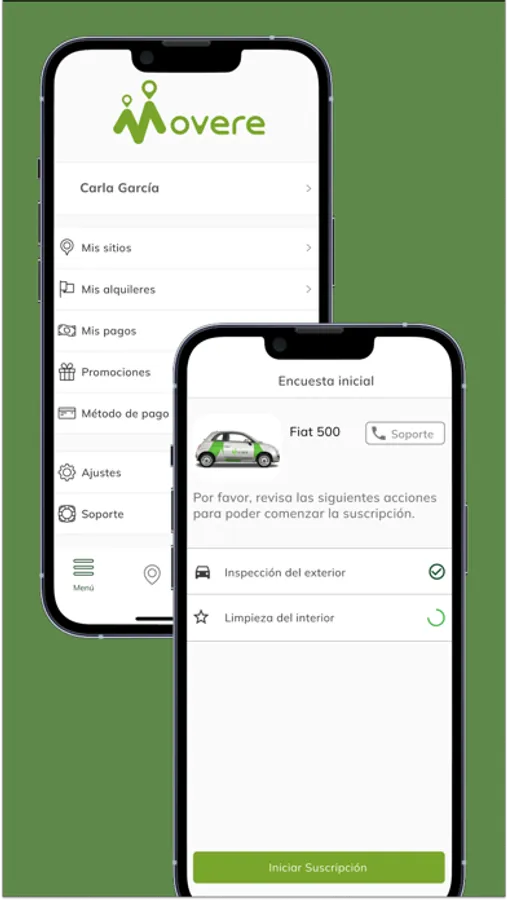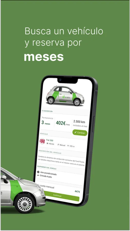 Desde la app lo puedes hacer todo. La app de Movere te mostrará los vehículos que tienes disponibles. Así que, busca, suscríbete y conduce.