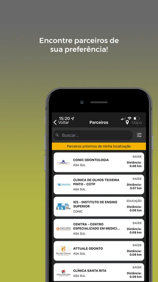 Busca de parceiros através do geolocalizador, filtragem personalizada para busca de empresas parceiras, acesso ao cartão virtual para utilizar os descontos, acesso a notícias e além do SAC para atendimento.