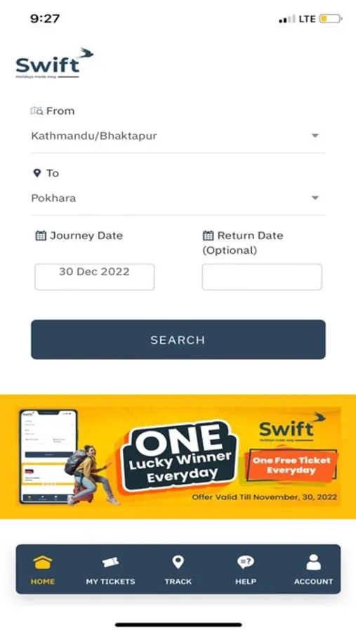 Swift Holidays a bus ticket booking portal introduced by Swift Holidays Pvt. Ltd. a intercity bus operator based in Nepal. Swift Holidays operates daily intercity bus services between major tourist destinations in Nepal such as, Kathmandu, Pokhara, Sauraha / Chitwan, Bhairahawa and Lumbini. This app features realtime selection of seats, bus ticket booking with no extra charges. Tickets can be purchased through digital wallets, mobile & internet banking, international Visa and Master Cards.