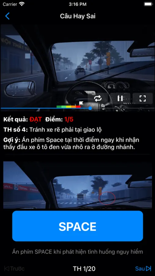 + 5 điểm: thời điểm bắt đầu có dấu hiệu phát hiện ra tình huống nguy hiểm, lái xe cần xử lý.