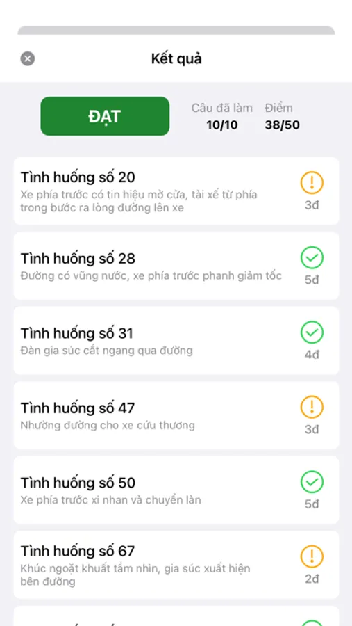 Học viên lựa chọn được giữa 2 mốc này sẽ đạt mức điểm tương ứng từ 5-4-3-2-1 điểm (điểm tối đa cho mỗi tình huống là 5đ).