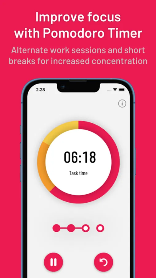 Team members can bring focus to their current work by applying the Pomodoro technique with the Pomodoro timer. Focussed work sessions are alternated with short breaks to increase concentration on the current task. It's ideal for open-ended or large work items, or for people with a tendency to procrastinate.