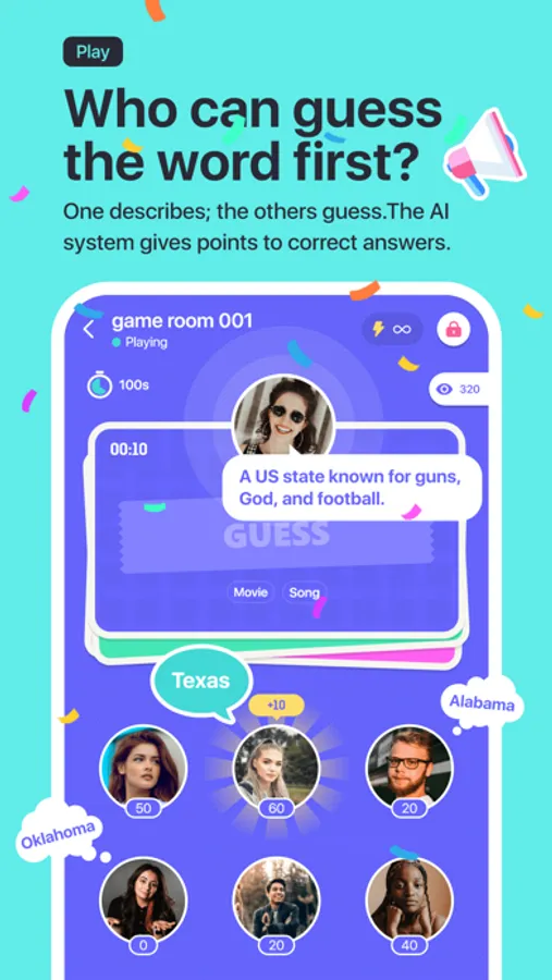 Show off your personality with your word clues, elocution, and performance ability. Can your friends get your meaning? Come play with existing friends, make new ones, and connect.