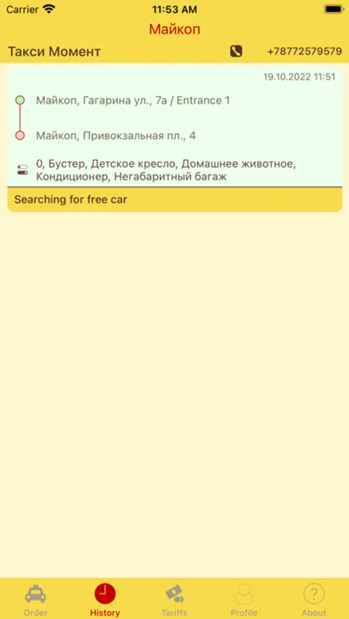 "Moment" is taxi ordering service in Maykop town and Kozelsk town of Russia.
