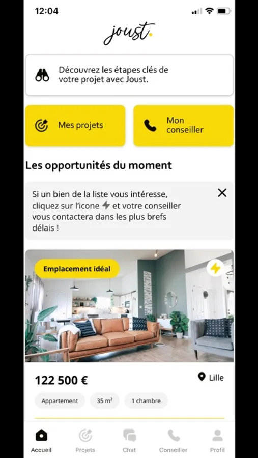 Depuis l’application, échangez à tout moment avec votre conseiller, suivez vos projets en temps réel et retrouvez l’intégralité de vos documents