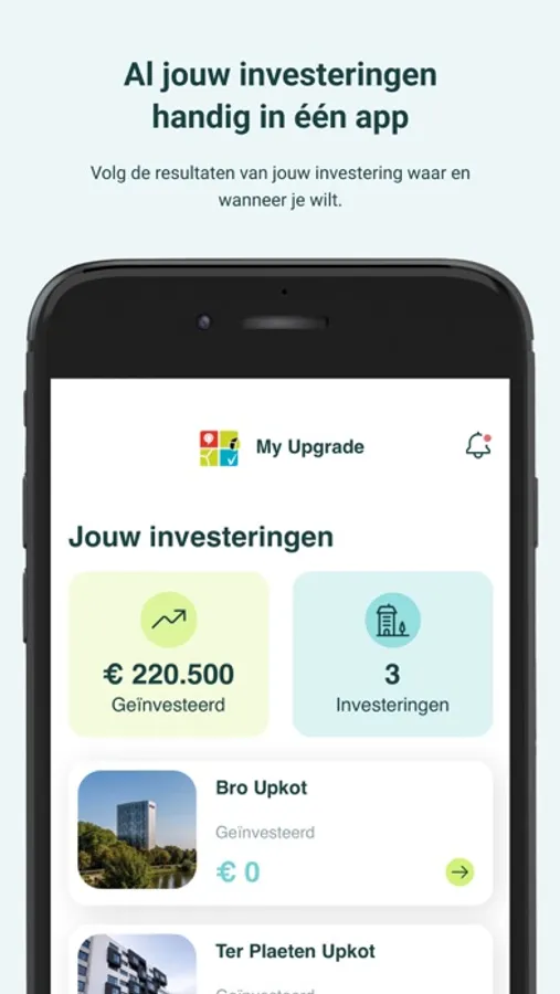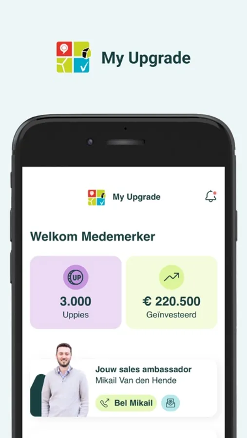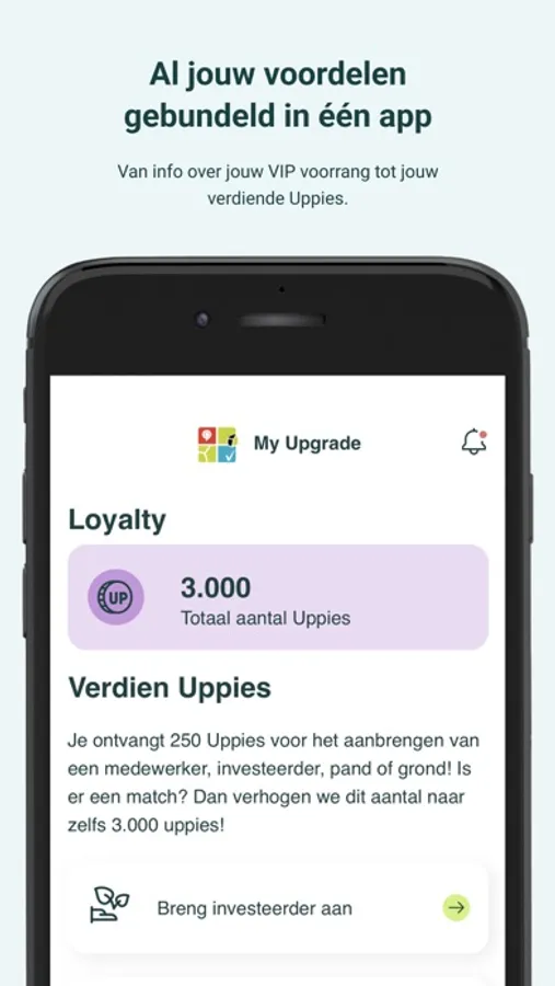 Een persoonlijke aanpak staat bij ons centraal. Maar om het jou als investeerder nog gemakkelijker te maken, ondersteunen we deze aanpak graag met een extra digitale service via ons klantenportaal, My Upgrade. Via My Upgrade, kan je altijd en overal jouw investeringen opvolgen, gebruik maken van ons Loyalty programma waar je nieuwe investeerders/medewerkers/gronden of panden kan aanbrengen in ruil voor Uppies én zie je al onze laatste nieuwtjes verschijnen.