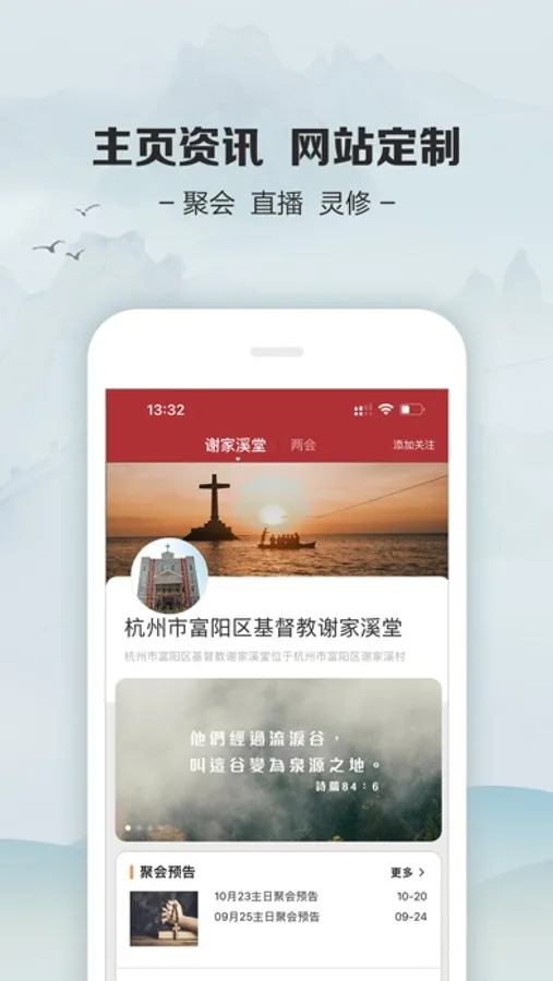 富阳教会包含富阳区基督教三自爱国委员会的官方咨询和其区域内教堂的咨询信息发布。以及合法合规的视频服务、聚会预约服务等。