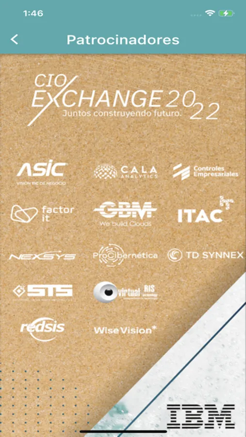 APP diseñado para el evento IBM CIO Exchange 2022, con el proposito de compartir contenido con los asistentes: agenda, conferencistas, y patrocinadores.