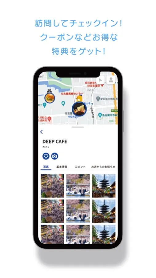 スポットからのお知らせや投稿など、近くにあるおすすめの情報を集めて発信します