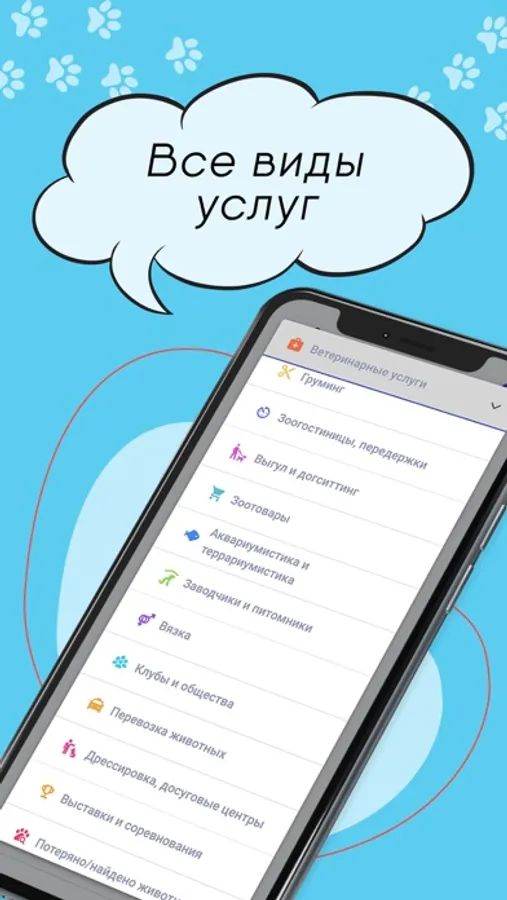 Более 27 категорий: ветеринарные клиники и врачи, зоогостиницы и передержки, груминг, выгул и догситинг, приюты и волонтёры, заводчики и питомники, клубы и общества, поиск партнёров для вязки, кинологи и дрессировка, выставки и соревнования, конюшни, аквариумы и террариумы, перевозка живности, карта pet friendly мест и информационные ресурсы, поиск пропавших животных, отлов, страхование, аренда для рекламы и кино, ритуал, зоопарки, продукты с ферм и хозяйств, пчеловодство и многое другое, а также питомники растений и услуги для сада и водоёма!