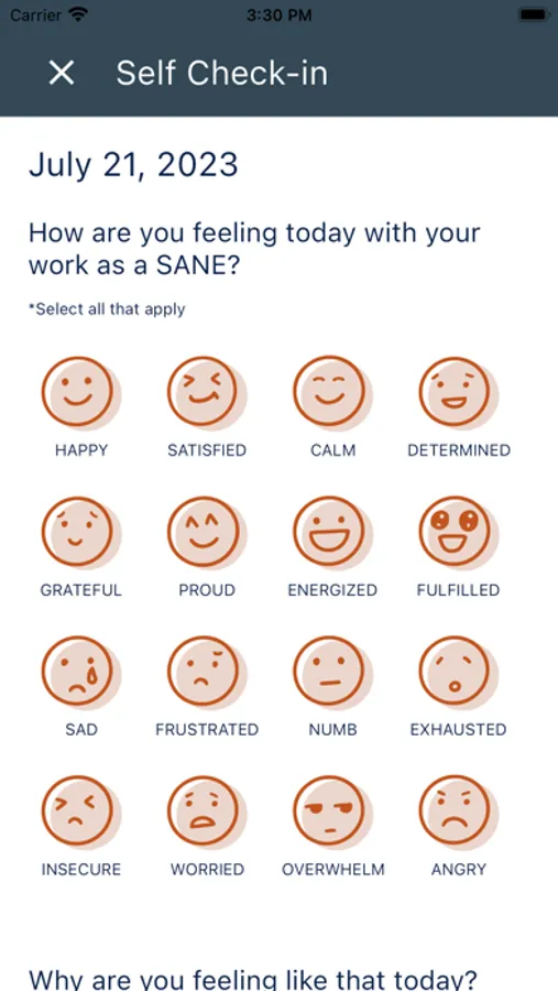 Users can express their emotions by selecting an emoji that represents how they're feeling, along with a brief record of why. This valuable tool helps users track their emotional well-being and reflect on their experiences over time.