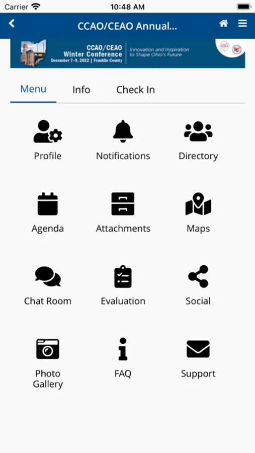 This is the mobile event app for the CCAO-CEAO joint 2022 annual conference. County Commissioners Association of Ohio and County Engineers Association of Ohio will come together for joint sessions and meetings regarding important topics relating to counties. This is also the time for the two associations' elections of officers for the coming year. Set up your profile, see push notifications received during the event; see the location of different session as well as a detailed description and duration. Also check out the social area and the photo gallery.