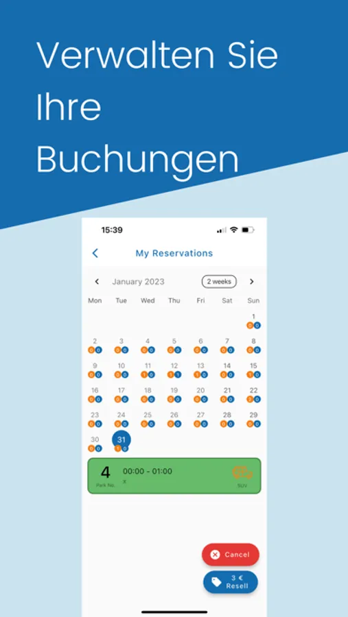 • Jeder Zeitpunkt einen für sich optimalen Parkplatz reservieren.