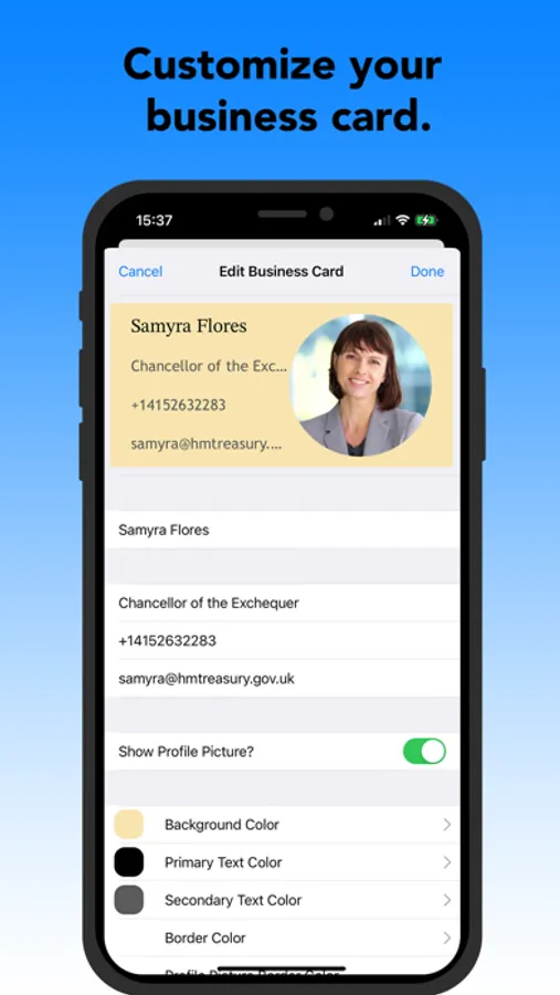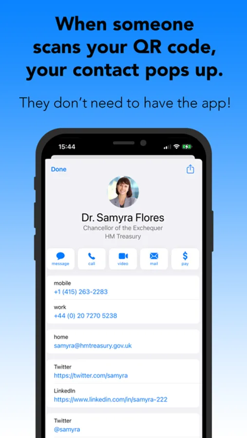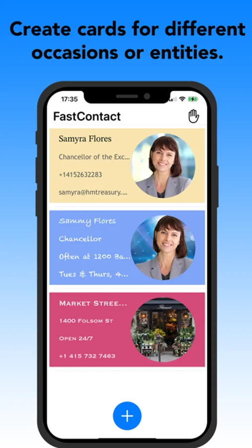 Create contact cards and share your contact information with anyone! They don't need the app, and they don't even need an iPhone.