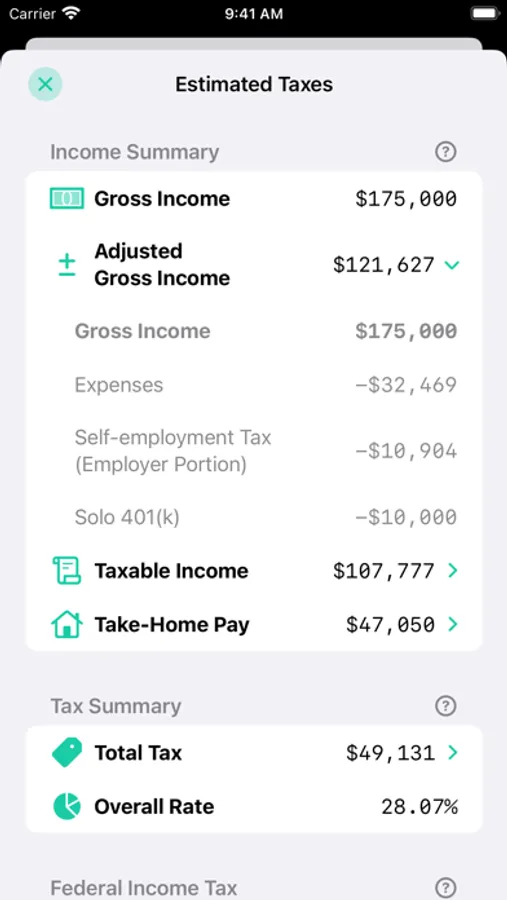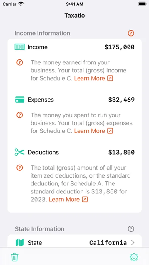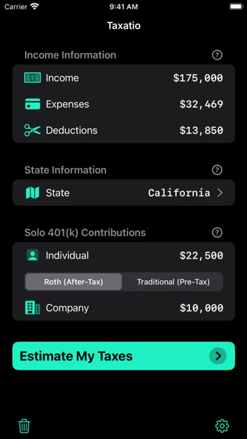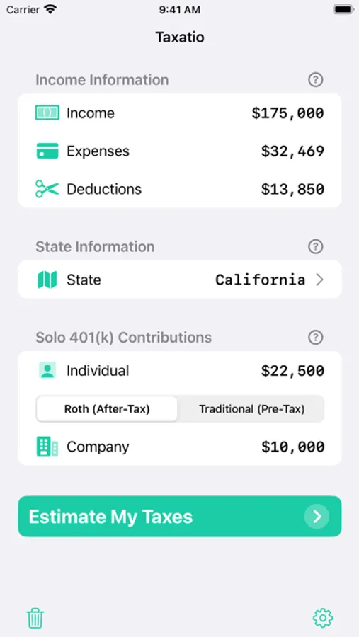 Demystify your taxes! Taxatio is an income tax calculator made specifically for self-employed sole proprietors based in the US. It is intended for freelancers, indie developers, and independent contractors with common tax scenarios.