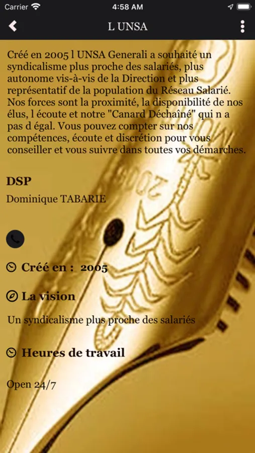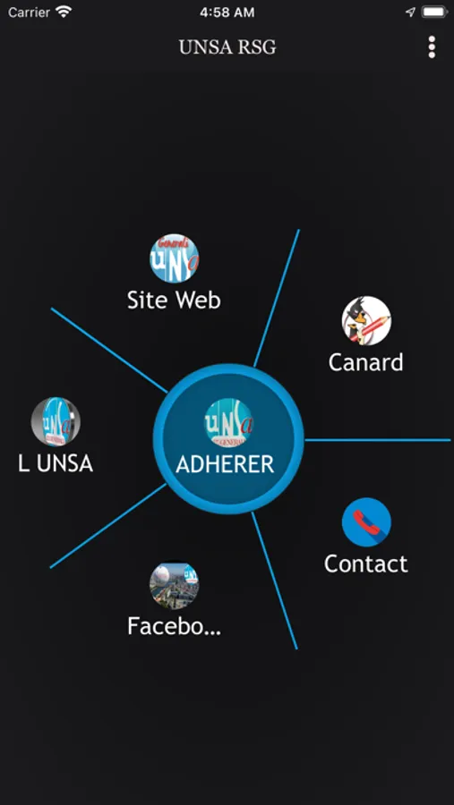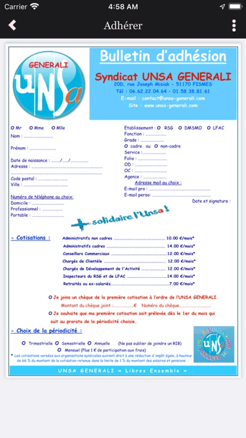 Une application qui en temps réel permet de suivre toutes les actualités avec un lien direct vers le site UNSA Réseau Salarié Generali, page Facebook, bulletin d'adhésion et page contacts