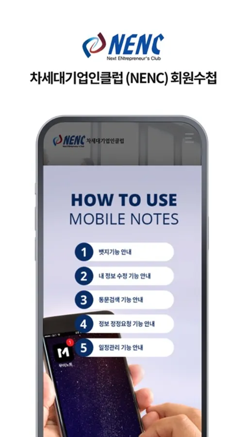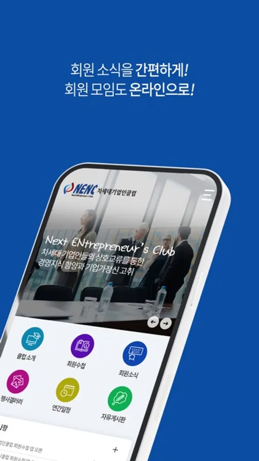 부산 경남 지역에 소재한 차세대 기업인 클럽 회원들의 소식과 회원 정보를 열람할 수 있는 모바일 수첩 어플리 케이션 입니다. 차세대 기업인 클럽 회원 및 사무국 직원만 사용 가능하며, 모바일 수첩에서 사용되는 모든 데이터는 차세대 기업인 클럽에서 직접 관리 합니다.