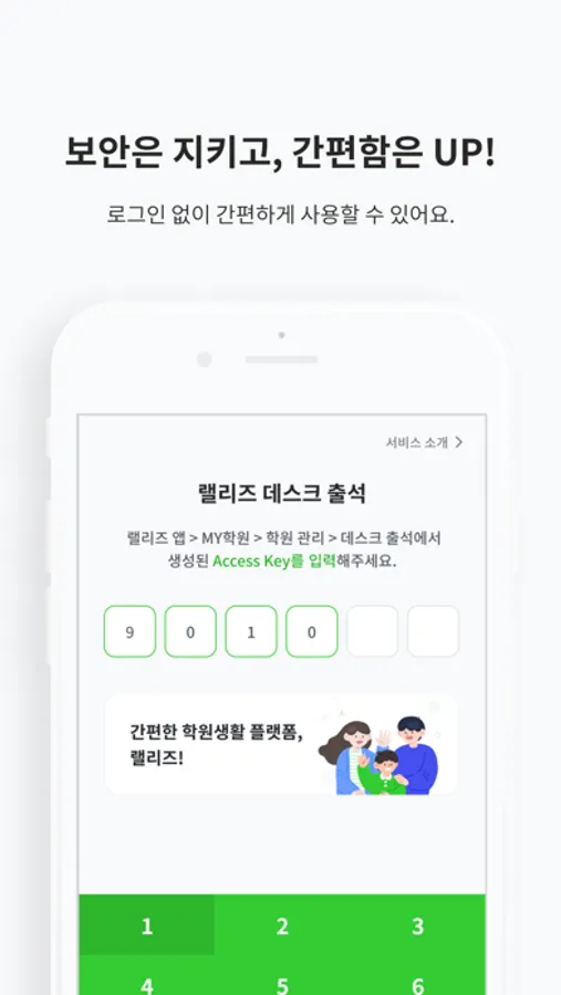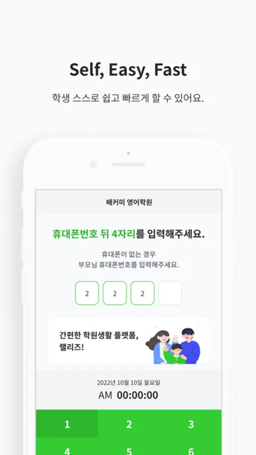 - 휴대폰 끝번호 4자리만 입력하면 1초만에 출석 체크 끝!