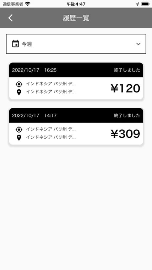 目的地到着時は、登録したクレジットカードで自動精算され、領収書はメールで届きます。