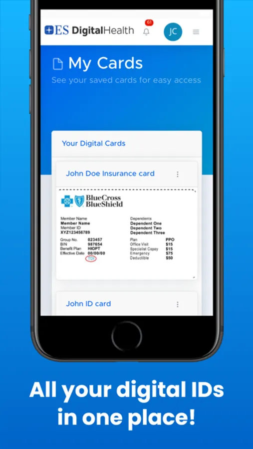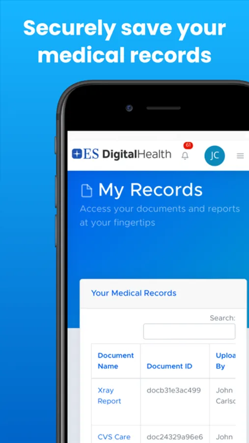 With the ES Digital Health app, you will have a partner assisting you each day in, gathering, storing, and transmitting your medical records. No more looking around the house or calling multiple provider offices to track down those records. Using this one app will allow you to find all of those records in one place and allow you to transmit them to the provider of your choice.