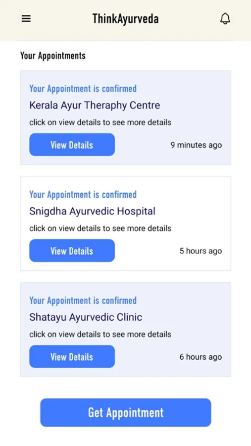 ThinkAyurvedaFirst app helps users to connect to nearby ayurvedic hospitals and can book an appointment based on the user's health condition.
