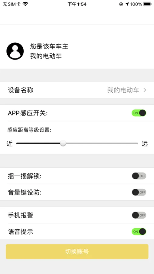 主页模块中,你可以了解到电动车的码数以及电量等信息,并且可以控制报警器。