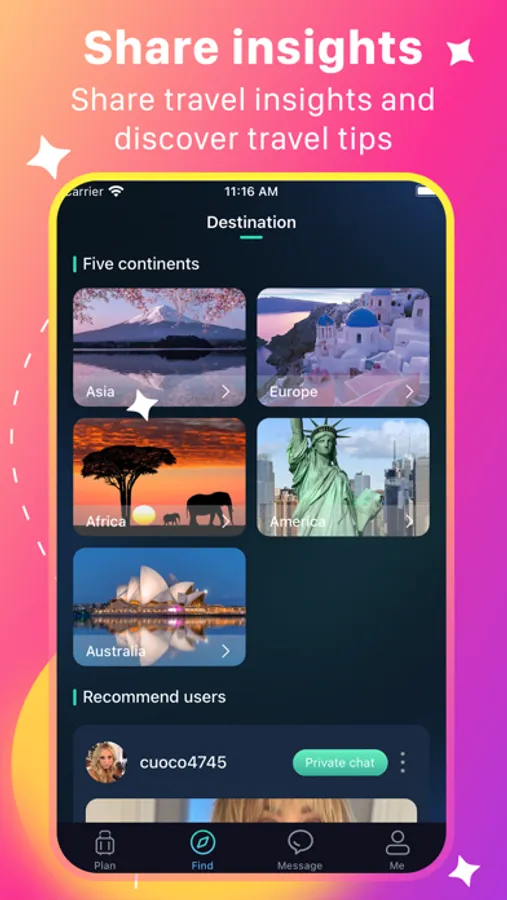 Here you can share your travel experiences, join travel circles and get the travel advice you need; you can also search for recommendations on how to eat, drink, play and buy; and many interesting people will post various activities.