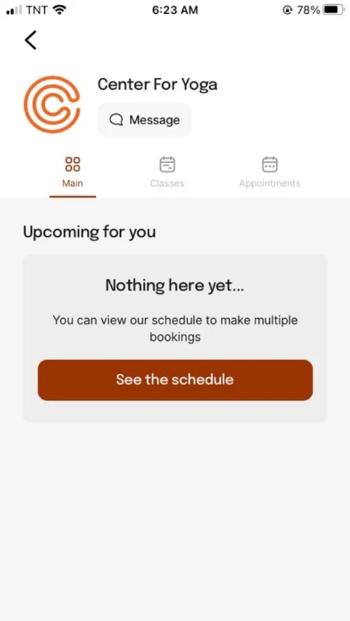 The Center for Yoga app makes it very easy for you to manage your Center for Yoga account, book into our classes and events, watch our on-demand content, and keep in touch with us. You can easily message us if you have a question or want to share something with them. You can also follow our public feed to see any announcements we make, promos we run, or content we share.