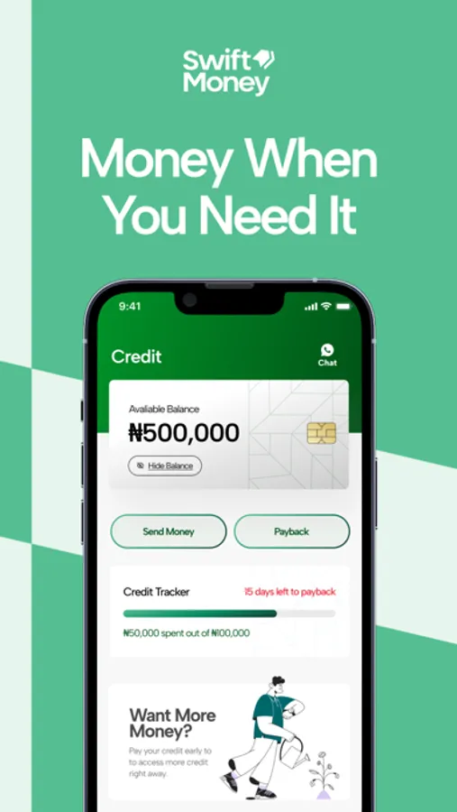 SwiftMoney caters to all your money needs in one place. It is a digital wallet for easy and fast transfer of money, it also grant easy access to credit when you need it and let’s you build your credit score.