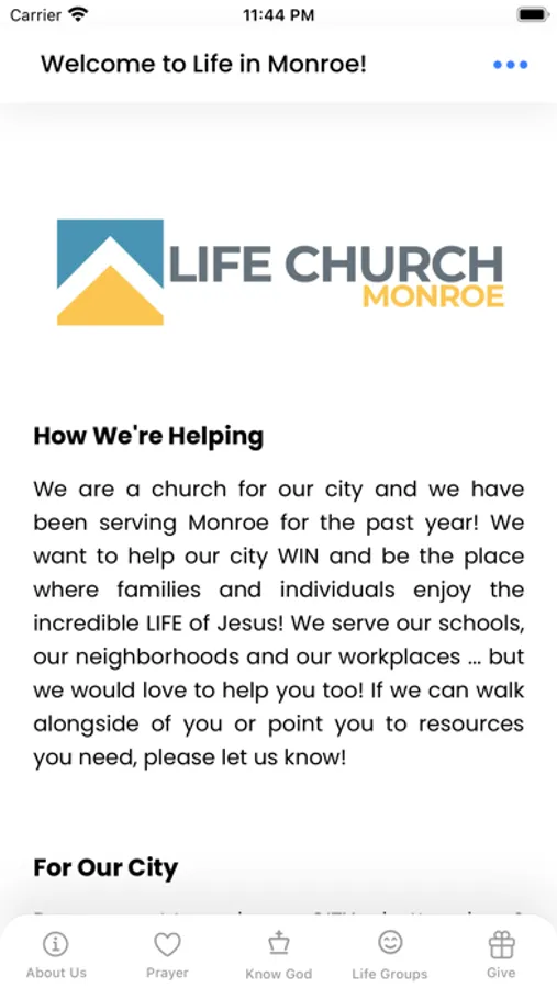 Connect with the Life Church Monroe family through our app. We are a church for our city and we have been serving Monroe for the past year! We want to help our city WIN and be the place where families and individuals enjoy the incredible LIFE of Jesus! We serve our schools, our neighborhoods, and our workplaces.