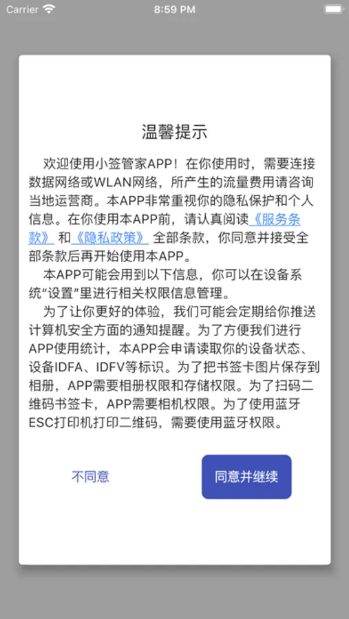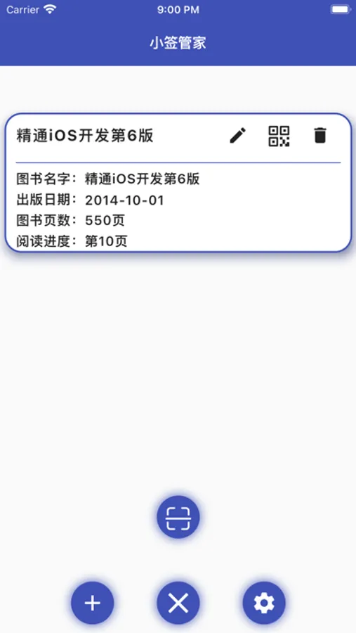 小签管家是用来书签信息的,书签信息包括图书名字、出版日期、总页数、阅读进度,可以将书签卡片二维码使用蓝牙打印机出来,贴在书架上,方便自己随时查看